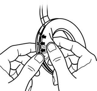Hvis en af puderne til ørekopperne går helt eller delvis af hovedtelefonerne, så følg disse trin for at genmontere ørekoppen: