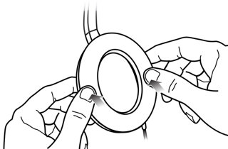 - Fastgør monteringsflangen, så den sidder jævnt og ensartet på hele ørepuden, og klik den forsigtigt på plads ved at trykke omkring hele ørepuden